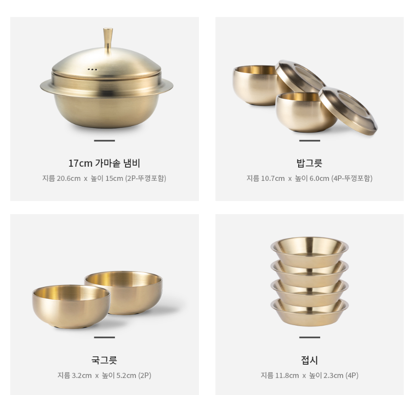 17CM 가마솥 냄비(2P-뚜껑포함), 밥그릇(4P-뚜껑포함), 국그릇(2P), 접시 (4P)