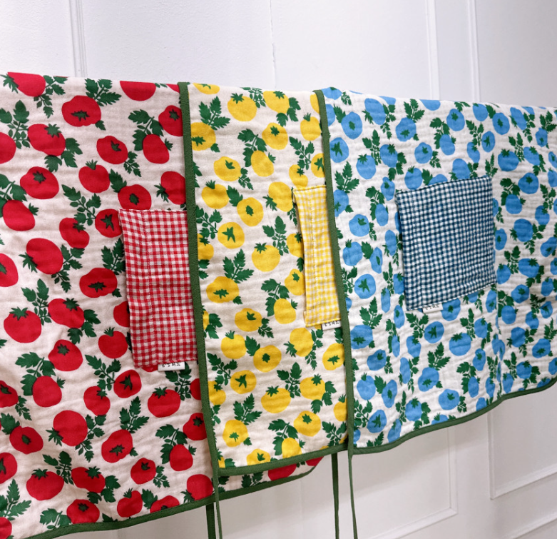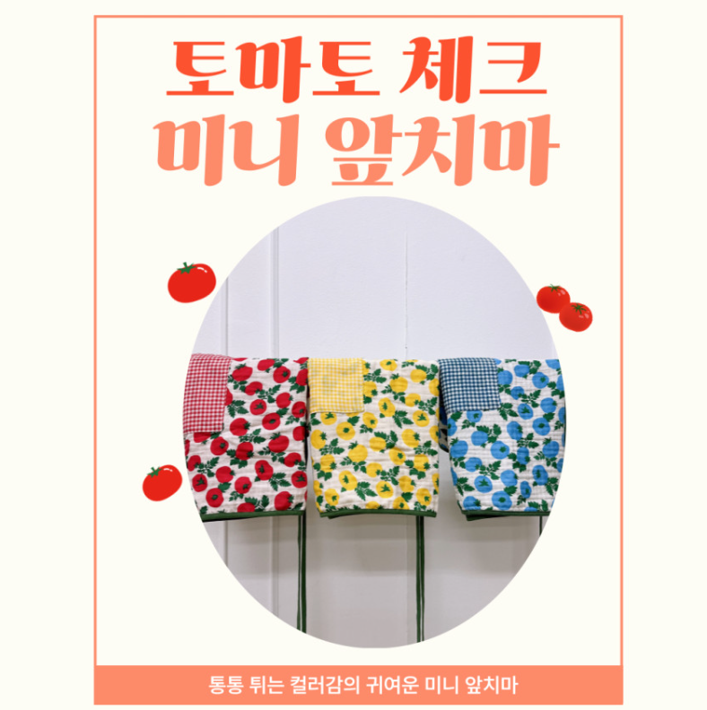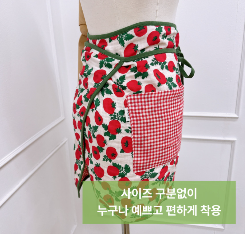 미니 앞치마 토마토 체크 4중 거즈면 양면 주머니 랩스커트 허리 앞치마 MADE IN KOREA 4중 거즈면으로 흡습력이...