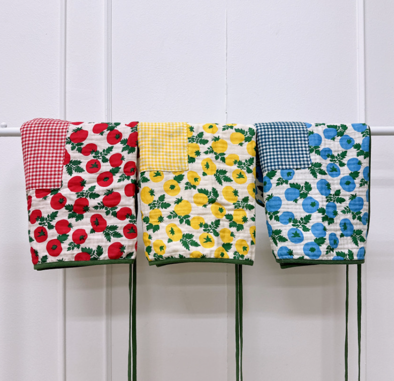 미니 앞치마 토마토 체크 4중 거즈면