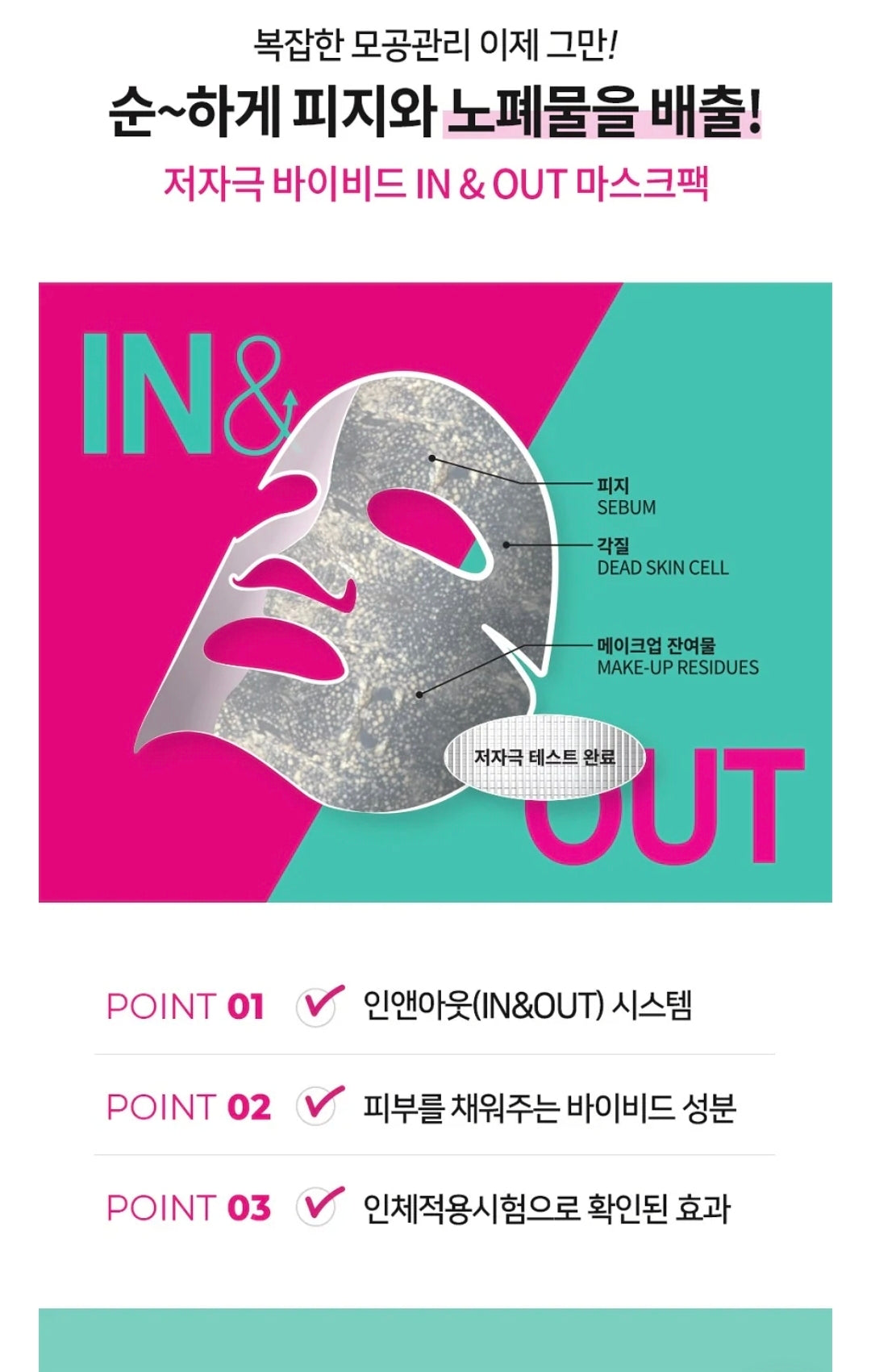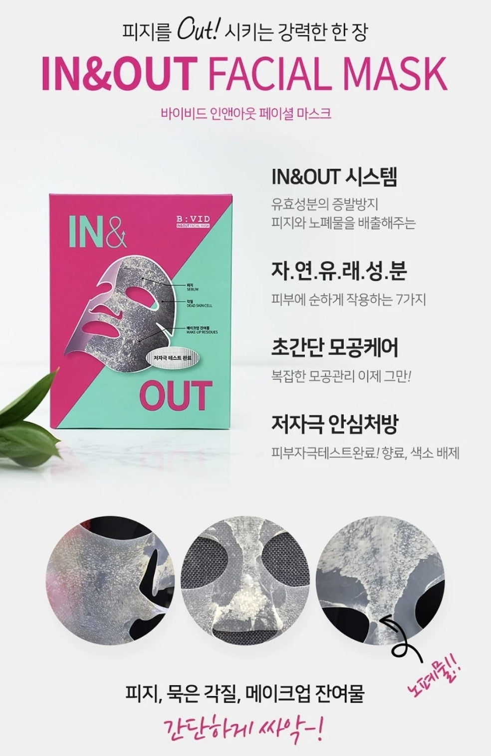 피부에 남아있는 각질 피지나 노페물은 초미세 그물 구조에 걸려 마스크에 흡착되 제거되는 방식의 팩입니다.