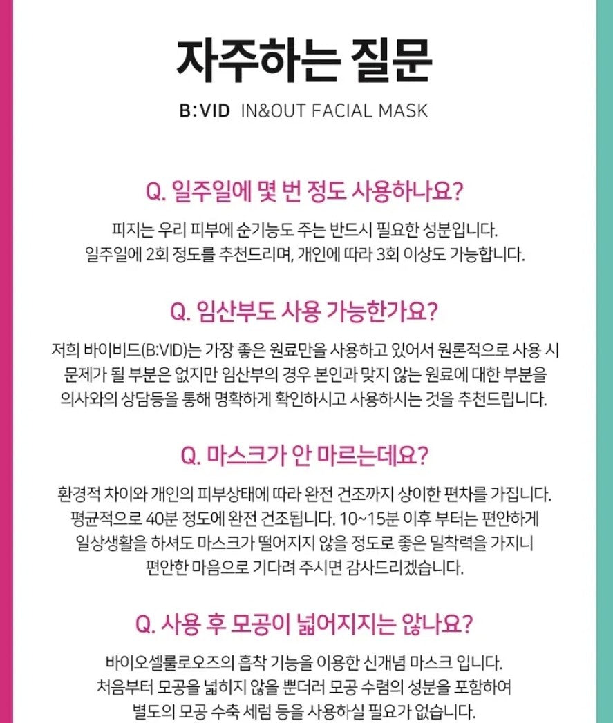 **바이비드 팩은 바이오셀룰로오즈 흡착기능을 이용했으므로, 걱정 없이 사용하셔도 됩니다.